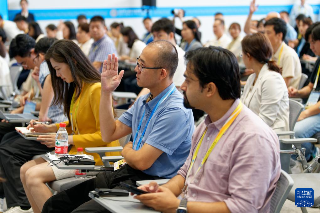 8月30日,在天津梅江国际会展中心,2025年上海合作组织峰会新闻中心举行陕西省专场吹风会,陕西省人民政府副省长、陕西省杨凌农业高新技术产业示范区管理委员会主任(兼)武文罡、陕西省人民政府外事办公室主任姚红娟、陕西省农业农村厅副厅长何建军、陕西省杨凌农业高新技术产业示范区党工委副书记、管委会常务副主任何玲介绍上海合作组织农业技术交流培训示范基地的建设运营及相关合作成果等情况,并回答记者提问。这是记者在吹风会现场举手提问。